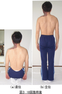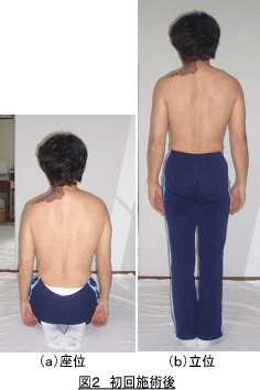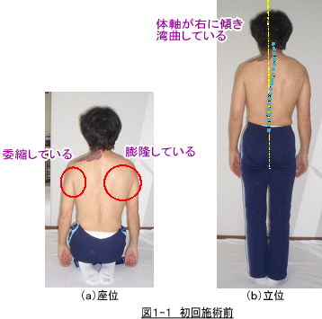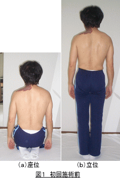 図1(a)の座位を見ていただくと左右の肩甲骨付近の大きさが全く違うことが分かると思います。