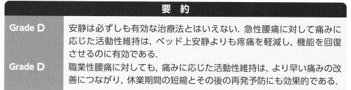 [安静は有効な治療方法とは言えない」というのは否定する根拠がある(Grade D)ということですから、安静は有効な治療法ということになります。